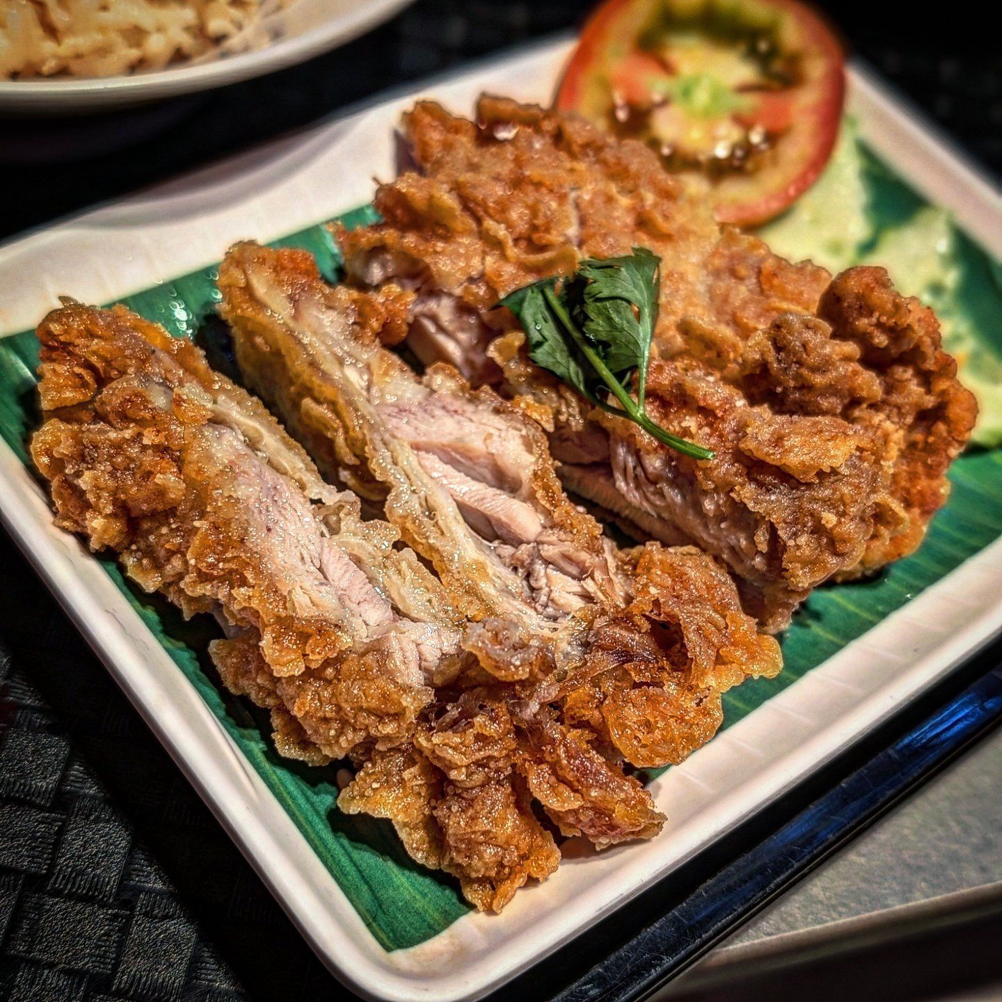 Their fried chicken version is perfectly crunchy breading with juicy flavorful and tender chicken and very fragrant chicken rice. I could eat it everyday ❤️